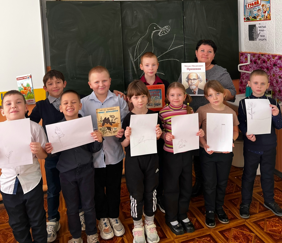 Библиотекарь познакомила учащихся начальных классов с биографией и творчеством Михаила Михайловича. Прочитала несколько рассказов, а ребятам предложила нарисовать иллюстрации к наиболее понравившимся произведениям. Прозвучали строки о росистых лугах, шелесте листьев в березовой роще, о прохладе лесных озер, вдохнувшие в зал ароматы летних приключений. Рассказы Пришвина, простые и мудрые, затронули самые тонкие струны детских душ, пробуждая любовь к окружающему миру и желание запечатлеть его красоту.